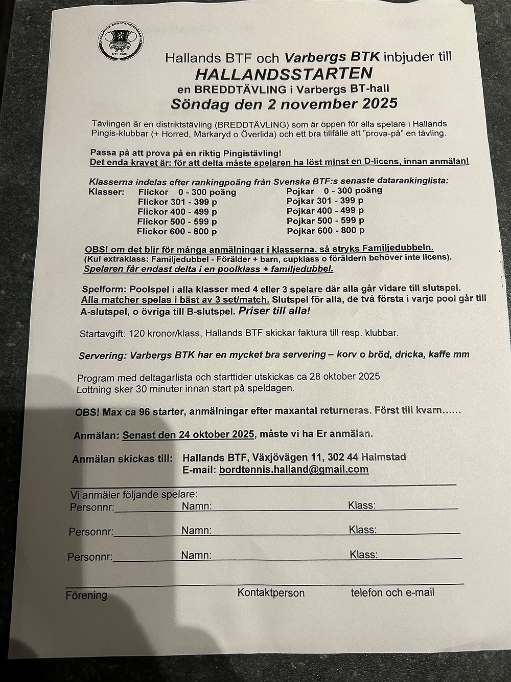 Anmäl till Mattias senast 20 okt på mejl. Licens löser undertecknad.